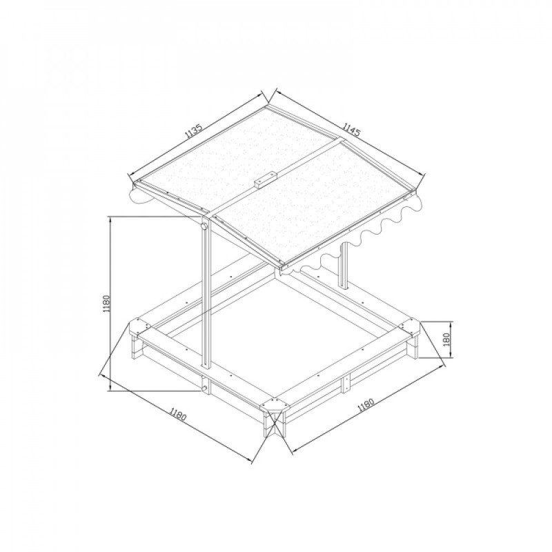 • Smilšu kaste ar regulējamu jumtu, lieliski iederēsies mājas pagalmā vai jau esošajā rotaļu laukumā. Smilšu kaste ir aprīkota ar auduma jumtu, kuru var regulēt sev piemērotā augstumā un leņķī. Pēc jumta pilnīgas nolaišanas tas darbojas kā smilšu kastes pārsegs, aizsargājot to no laika apstākļiem un dzīvniekiem. Smilšu kastei ir paplašinātas malas, ko var izmantot kā soliņu.