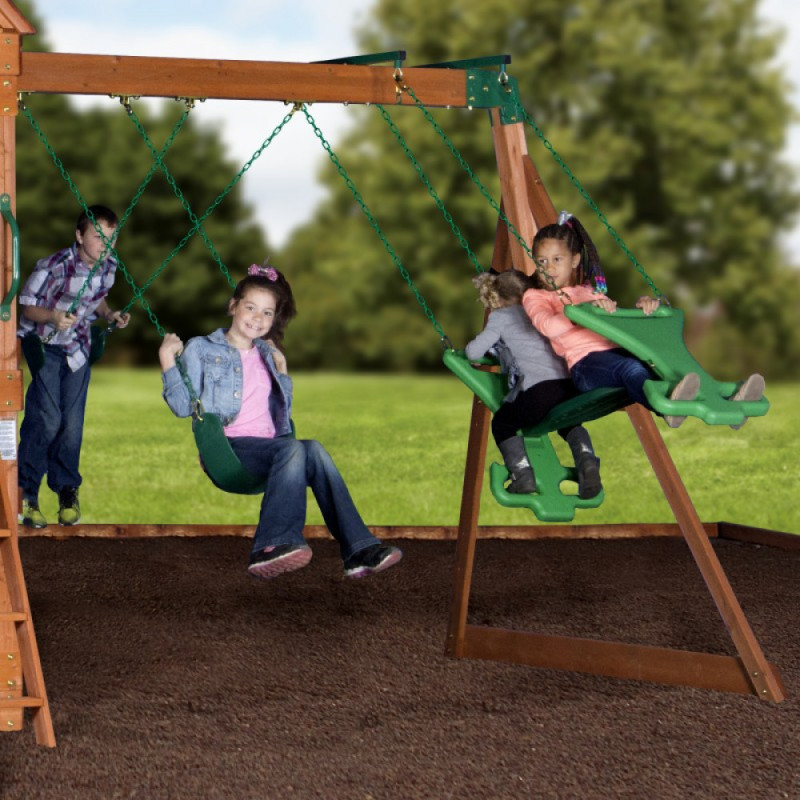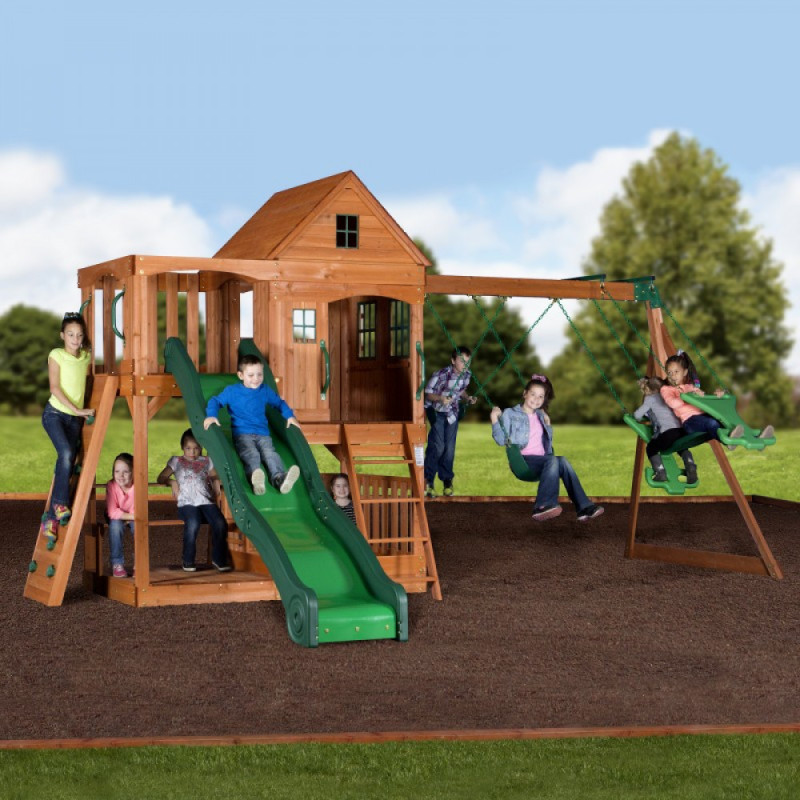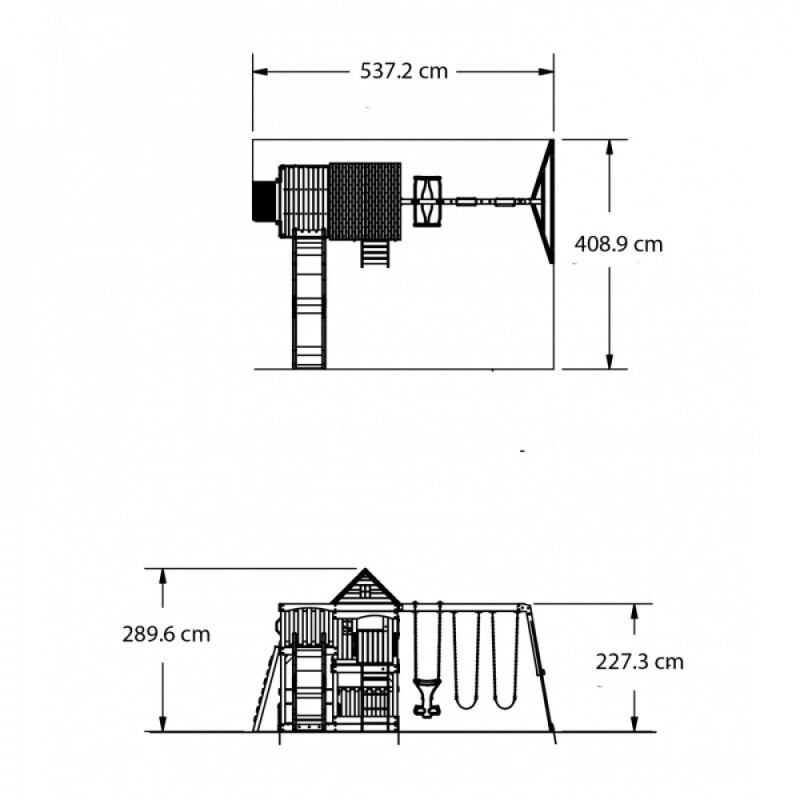 Spēļu koka komplekss "Hill Crest" būs lieliska vieta, kur rotaļāties un izkustēties. Tam ir veranda ar iestrādātiem soliņiem, nojume, balkons, lievenis un palodze/galdiņš. Zem torņa iespējams ierīkot smilšu kasti.